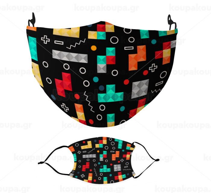 Tetris, Μάσκα υφασμάτινη Ενηλίκων πολλαπλών στρώσεων με υποδοχή φίλτρου