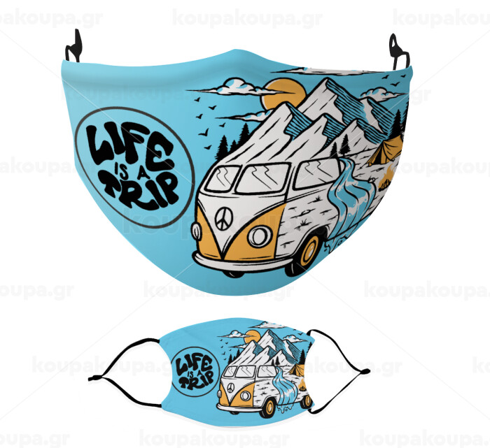 Life is a trip, Μάσκα υφασμάτινη Ενηλίκων πολλαπλών στρώσεων με υποδοχή φίλτρου
