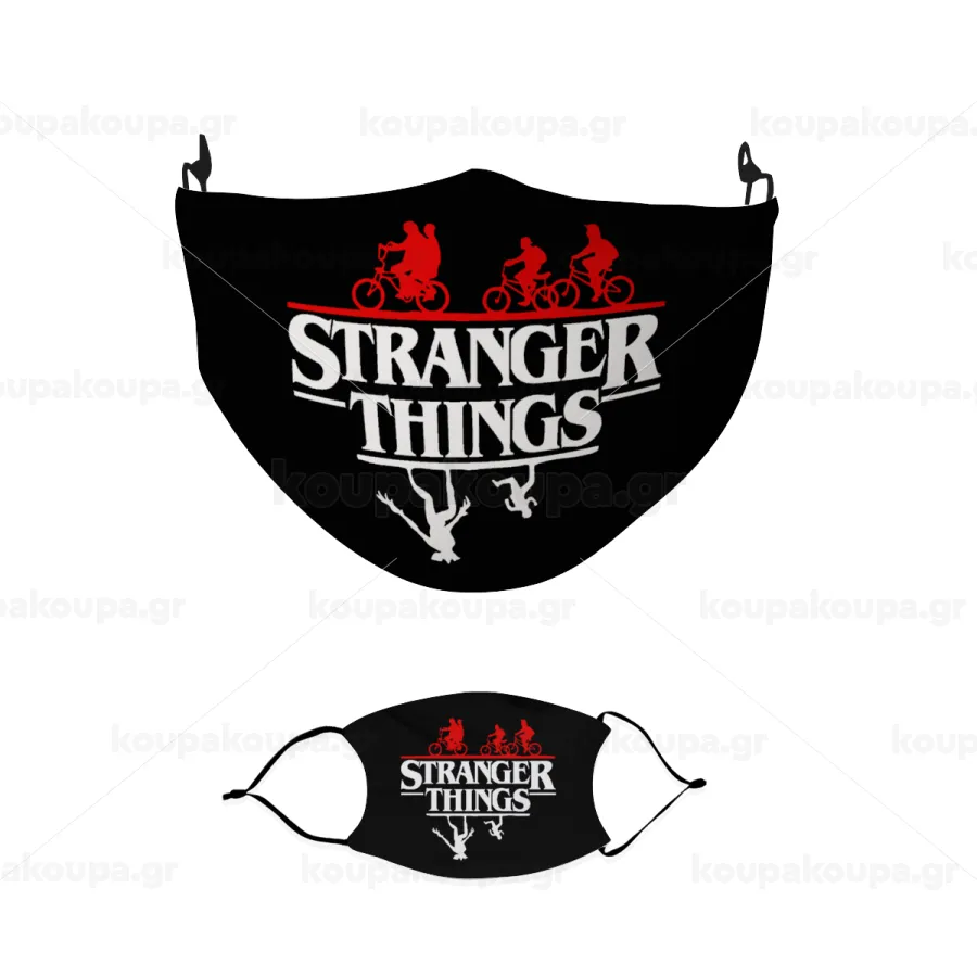 Stranger Things upside down, Μάσκα υφασμάτινη παιδική πολλαπλών στρώσεων με υποδοχή φίλτρου