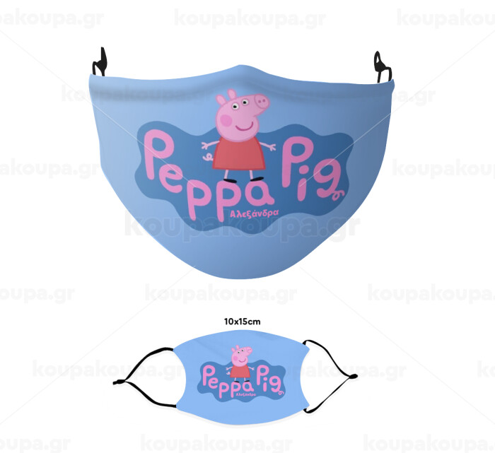 Πέππα το γουρουνάκι μπλε με όνομα, Μάσκα υφασμάτινη παιδική πολλαπλών στρώσεων με υποδοχή φίλτρου