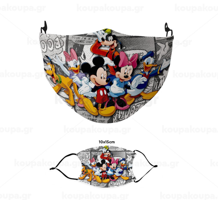Mickey & Friends comic, Μάσκα υφασμάτινη παιδική πολλαπλών στρώσεων με υποδοχή φίλτρου