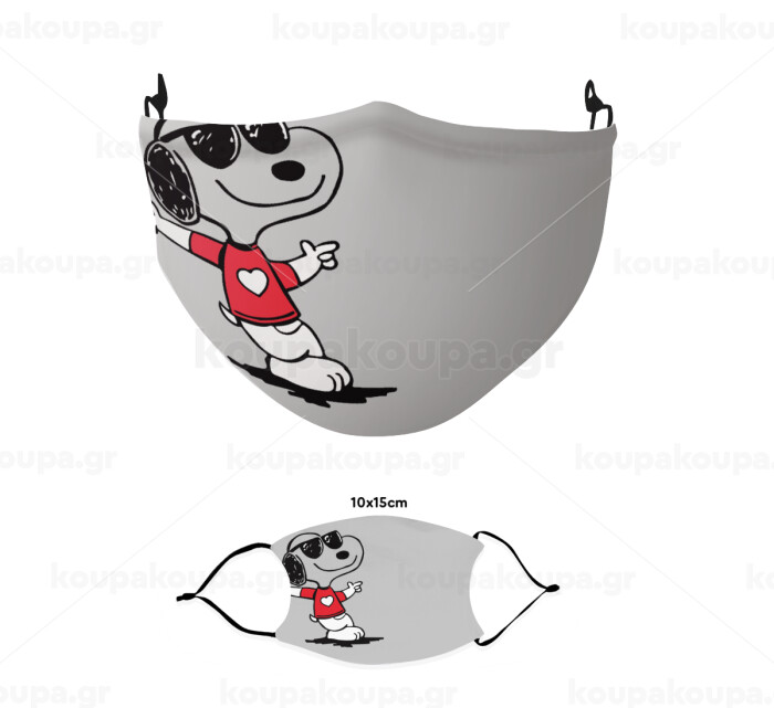 Snoopy καρδούλα, Μάσκα υφασμάτινη παιδική πολλαπλών στρώσεων με υποδοχή φίλτρου