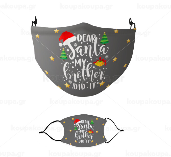 Dear santa my Brother did it, Μάσκα υφασμάτινη παιδική πολλαπλών στρώσεων με υποδοχή φίλτρου