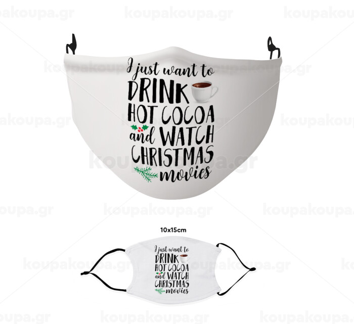 I just want to drink hot cocoa and watch christmas movies, Μάσκα υφασμάτινη παιδική πολλαπλών στρώσεων με υποδοχή φίλτρου