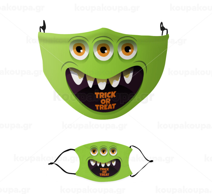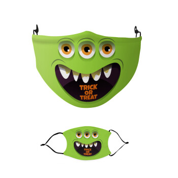 Halloween trick or treat 3 eyes monster, Μάσκα υφασμάτινη παιδική πολλαπλών στρώσεων με υποδοχή φίλτρου