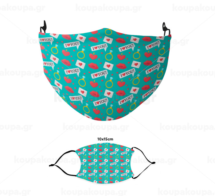 I Love You hearts rings & kiss pattern, Μάσκα υφασμάτινη παιδική πολλαπλών στρώσεων με υποδοχή φίλτρου