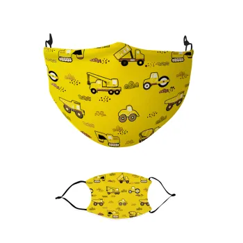 Αμαξάκια φορτωτές και μπουλντόζες, Μάσκα υφασμάτινη παιδική πολλαπλών στρώσεων με υποδοχή φίλτρου