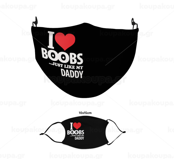 I Love boobs ...just like my daddy, Μάσκα υφασμάτινη παιδική πολλαπλών στρώσεων με υποδοχή φίλτρου