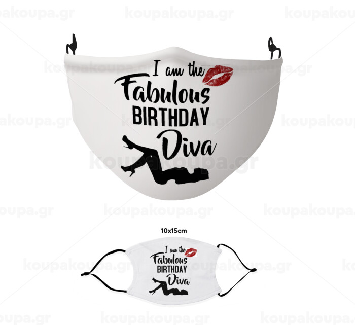 I am the fabulous Birthday Diva, Μάσκα υφασμάτινη παιδική πολλαπλών στρώσεων με υποδοχή φίλτρου