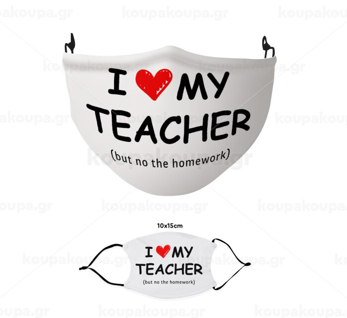 i love my teacher but no the homework, Μάσκα υφασμάτινη παιδική πολλαπλών στρώσεων με υποδοχή φίλτρου