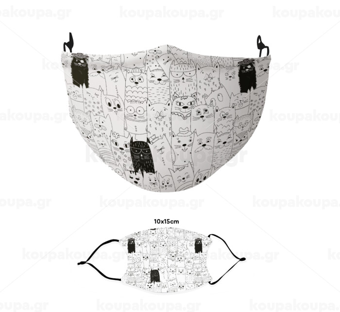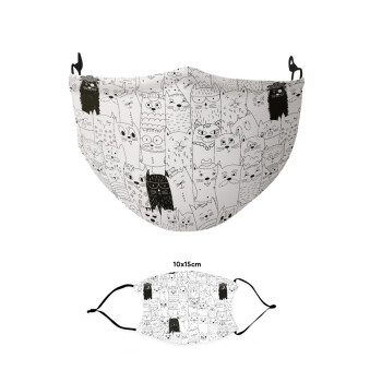 Γάτες γραμμικό σχέδιο, Μάσκα υφασμάτινη παιδική πολλαπλών στρώσεων με υποδοχή φίλτρου