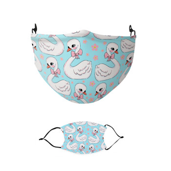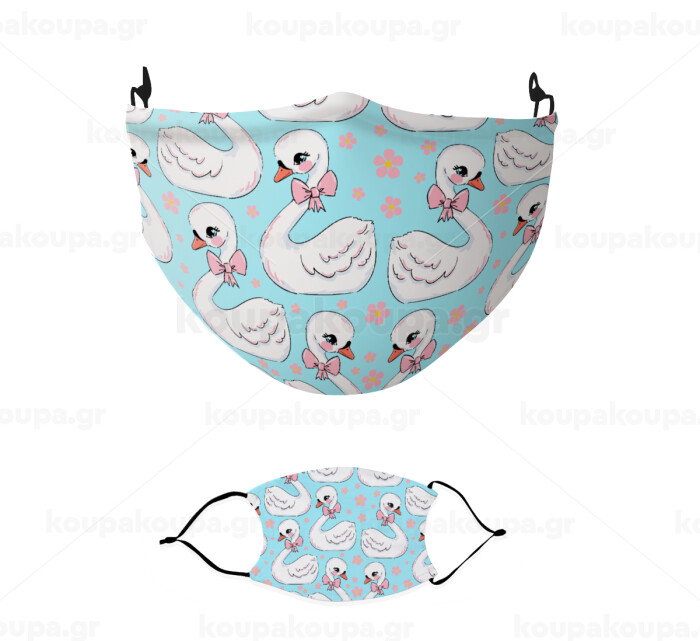 Λευκός κύκνος με παπιγιόν, Μάσκα υφασμάτινη παιδική πολλαπλών στρώσεων με υποδοχή φίλτρου