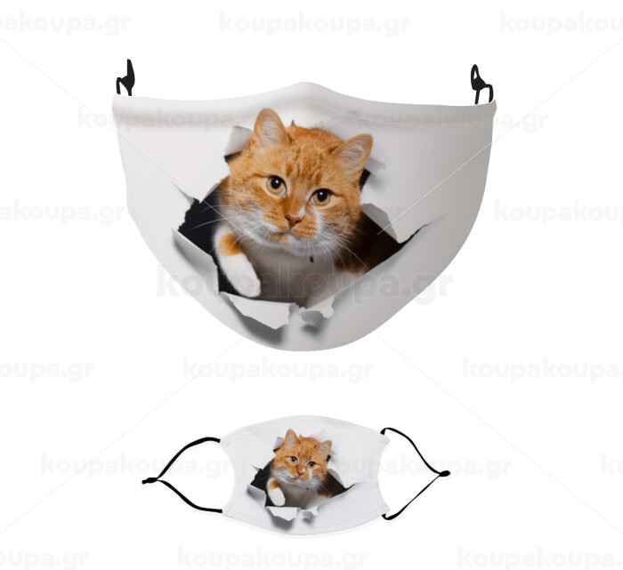 Cat cracked, Μάσκα υφασμάτινη παιδική πολλαπλών στρώσεων με υποδοχή φίλτρου