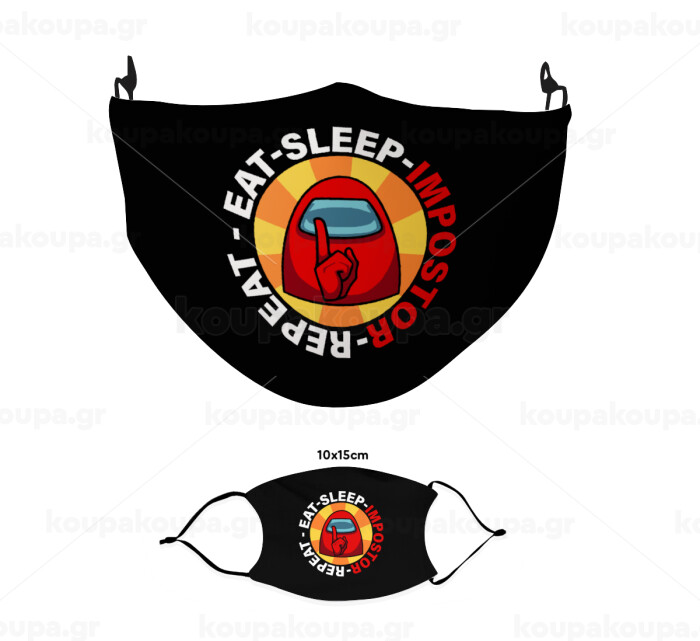 Among US Eat Sleep Repeat Impostor, Μάσκα υφασμάτινη παιδική πολλαπλών στρώσεων με υποδοχή φίλτρου