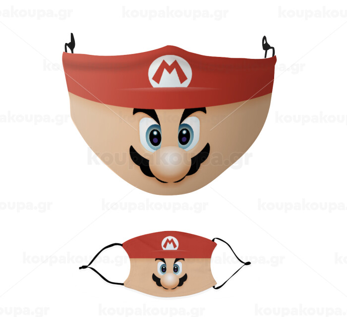 Super mario flat, Μάσκα υφασμάτινη παιδική πολλαπλών στρώσεων με υποδοχή φίλτρου