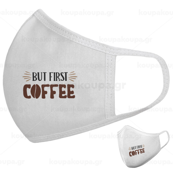 But first Coffee, Μάσκα υφασμάτινη υψηλής άνεσης παιδική (Δώρο πλαστική θήκη)