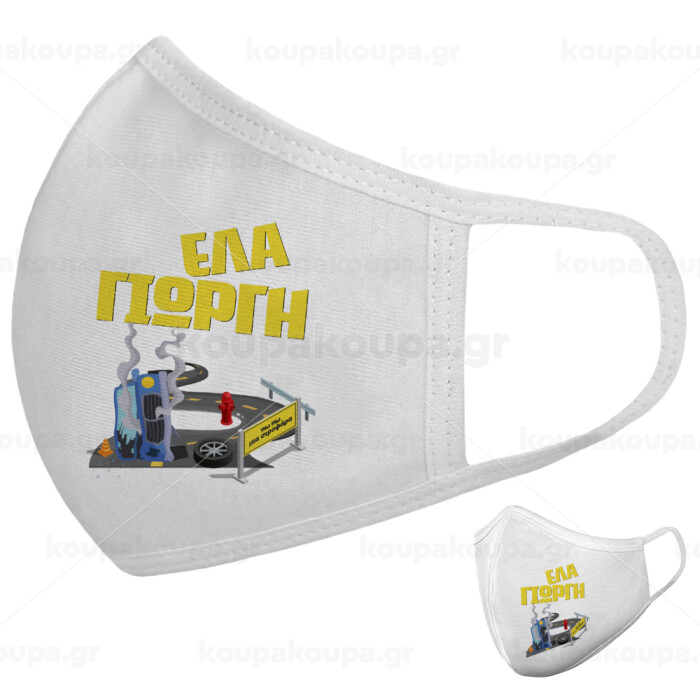 Έλα Γιώργη, πω πω μια στροφάρα, Μάσκα υφασμάτινη υψηλής άνεσης παιδική (Δώρο πλαστική θήκη)