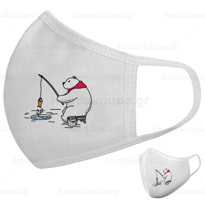 Αρκούδα ψαρεύει, Μάσκα υφασμάτινη υψηλής άνεσης παιδική (Δώρο πλαστική θήκη)
