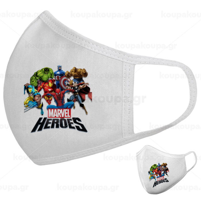 MARVEL heroes, Μάσκα υφασμάτινη υψηλής άνεσης παιδική (Δώρο πλαστική θήκη)