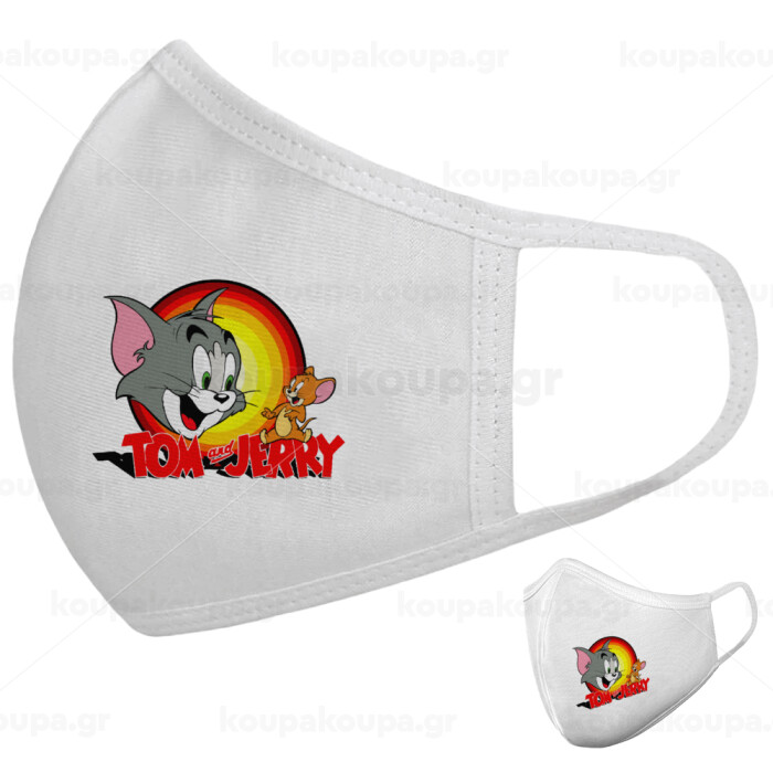 Tom and Jerry, Μάσκα υφασμάτινη υψηλής άνεσης παιδική (Δώρο πλαστική θήκη)