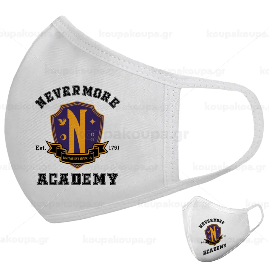 Wednesday Nevermore Academy University, Μάσκα υφασμάτινη υψηλής άνεσης παιδική (Δώρο πλαστική θήκη)