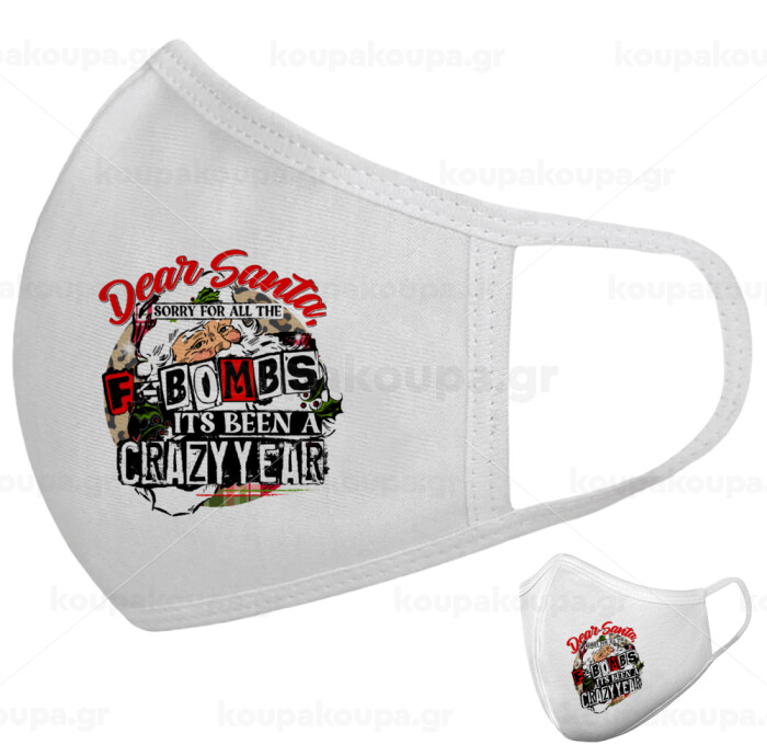 Dear Santa, sorry for all the F-bombs, Μάσκα υφασμάτινη υψηλής άνεσης παιδική (Δώρο πλαστική θήκη)