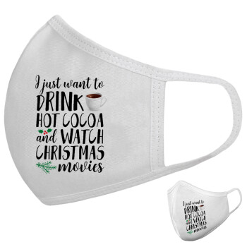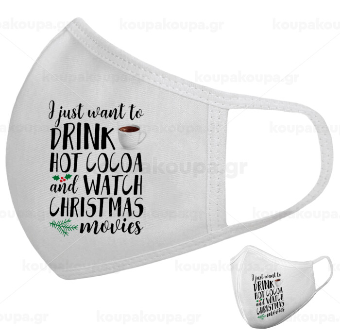 I just want to drink hot cocoa and watch christmas movies, Μάσκα υφασμάτινη υψηλής άνεσης παιδική (Δώρο πλαστική θήκη)
