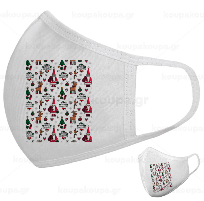 Santas, Deers & Trees, Μάσκα υφασμάτινη υψηλής άνεσης παιδική (Δώρο πλαστική θήκη)