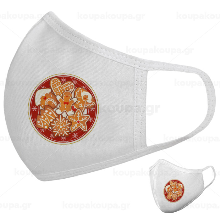 xmas cookies, Μάσκα υφασμάτινη υψηλής άνεσης παιδική (Δώρο πλαστική θήκη)