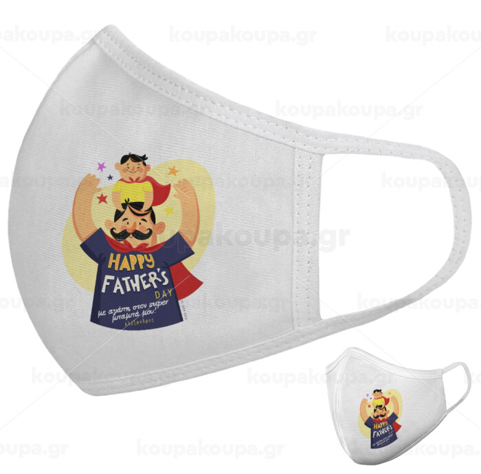Happy Fathers Day με όνομα, Μάσκα υφασμάτινη υψηλής άνεσης παιδική (Δώρο πλαστική θήκη)