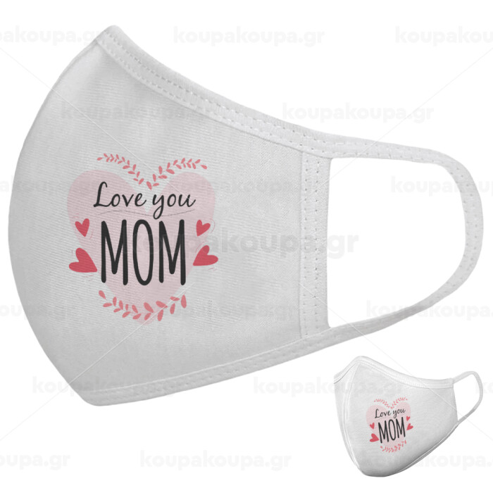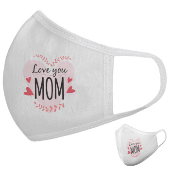 Mother's day I Love you Mom heart, Μάσκα υφασμάτινη υψηλής άνεσης παιδική (Δώρο πλαστική θήκη)