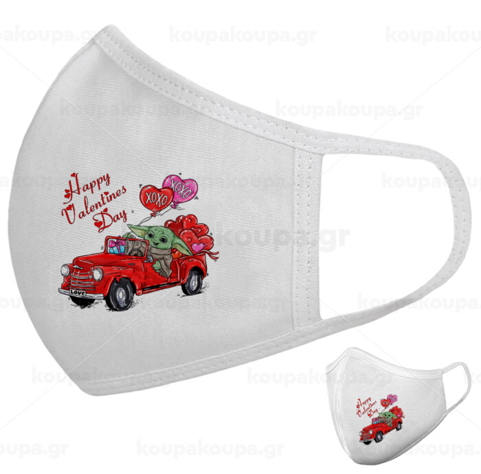 Yoda, happy valentines day (xoxo), Μάσκα υφασμάτινη υψηλής άνεσης παιδική (Δώρο πλαστική θήκη)