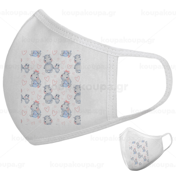 Ιπποπόταμος, Μάσκα υφασμάτινη υψηλής άνεσης παιδική (Δώρο πλαστική θήκη)