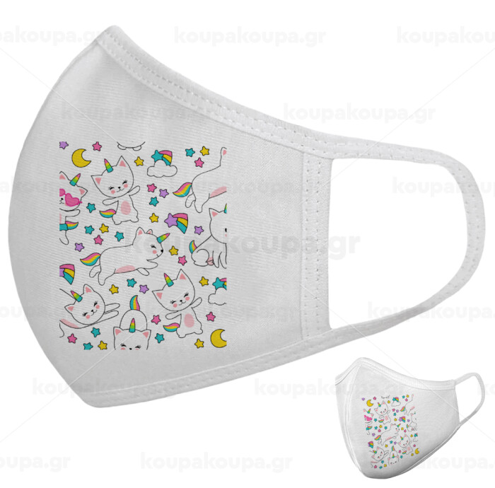 Cats unicorns, Μάσκα υφασμάτινη υψηλής άνεσης παιδική (Δώρο πλαστική θήκη)