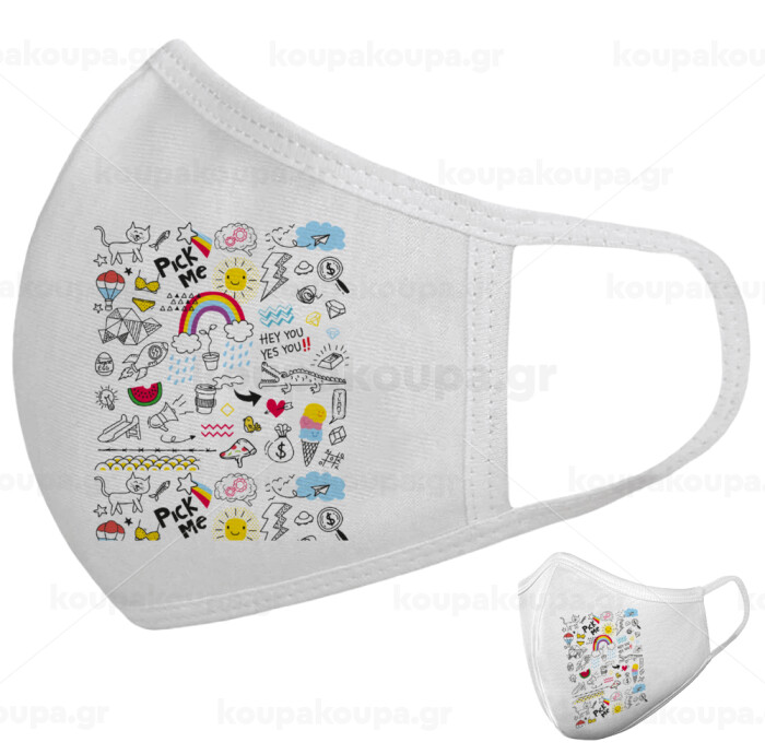 Doodle kids, Μάσκα υφασμάτινη υψηλής άνεσης παιδική (Δώρο πλαστική θήκη)