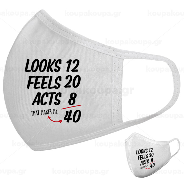 Looks, feels, acts LIKE your AGE, Μάσκα υφασμάτινη υψηλής άνεσης παιδική (Δώρο πλαστική θήκη)