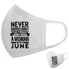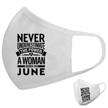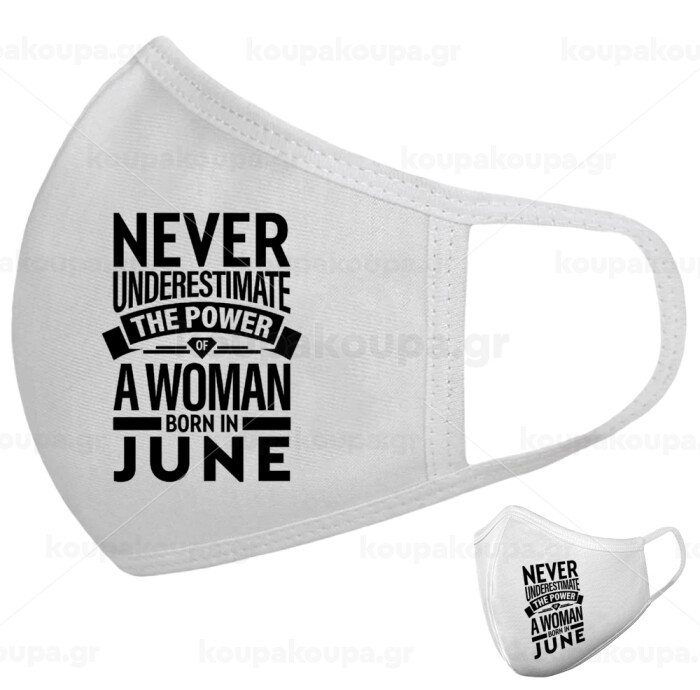 Never Underestimate the poer of a Woman born in..., Μάσκα υφασμάτινη υψηλής άνεσης παιδική (Δώρο πλαστική θήκη)