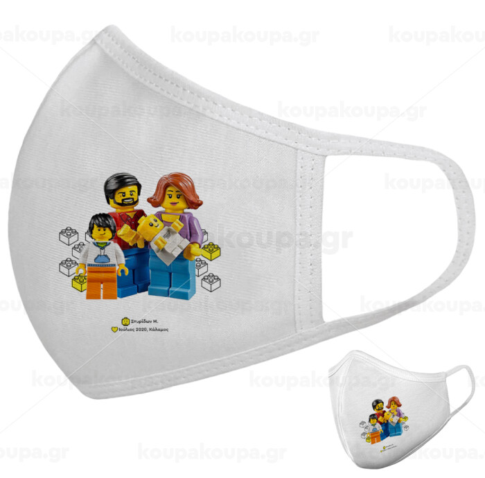 Τύπου Lego family, Μάσκα υφασμάτινη υψηλής άνεσης παιδική (Δώρο πλαστική θήκη)
