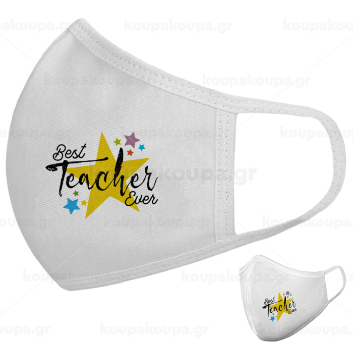 Teacher super star!!!, Μάσκα υφασμάτινη υψηλής άνεσης παιδική (Δώρο πλαστική θήκη)