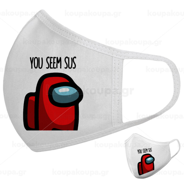 Among US, you seem sus, Μάσκα υφασμάτινη υψηλής άνεσης παιδική (Δώρο πλαστική θήκη)