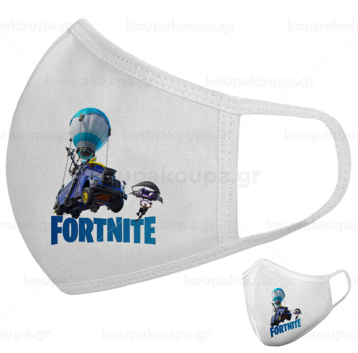 Fortnite Bus, Μάσκα υφασμάτινη υψηλής άνεσης παιδική (Δώρο πλαστική θήκη)