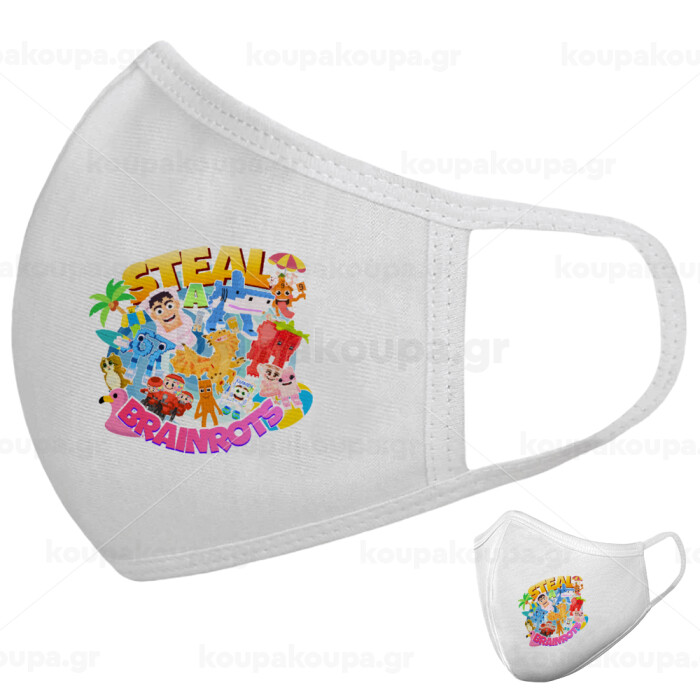 Roblox Steal a Brainrot, Μάσκα υφασμάτινη υψηλής άνεσης παιδική (Δώρο πλαστική θήκη)