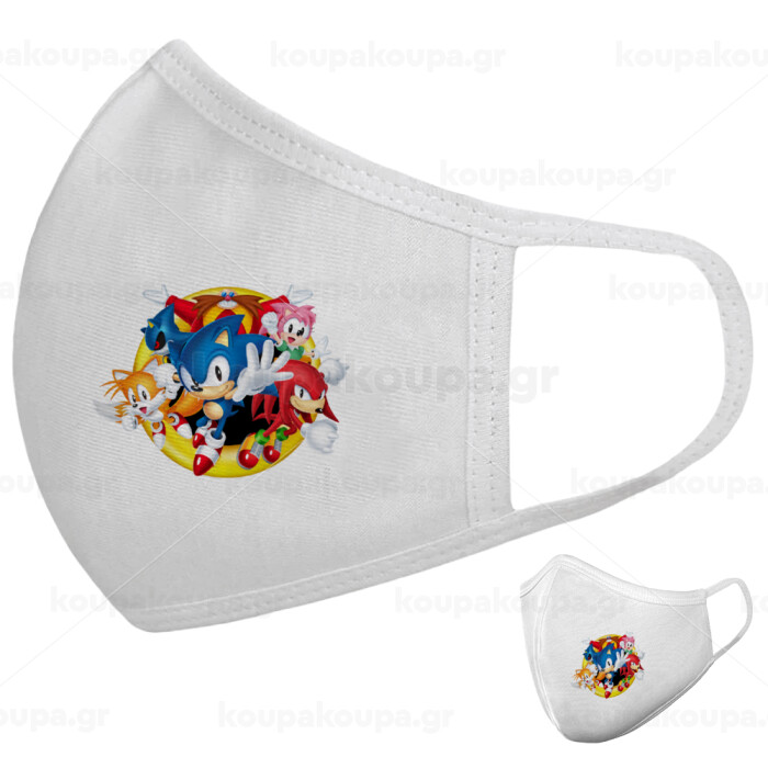 Sonic and friends, Μάσκα υφασμάτινη υψηλής άνεσης παιδική (Δώρο πλαστική θήκη)