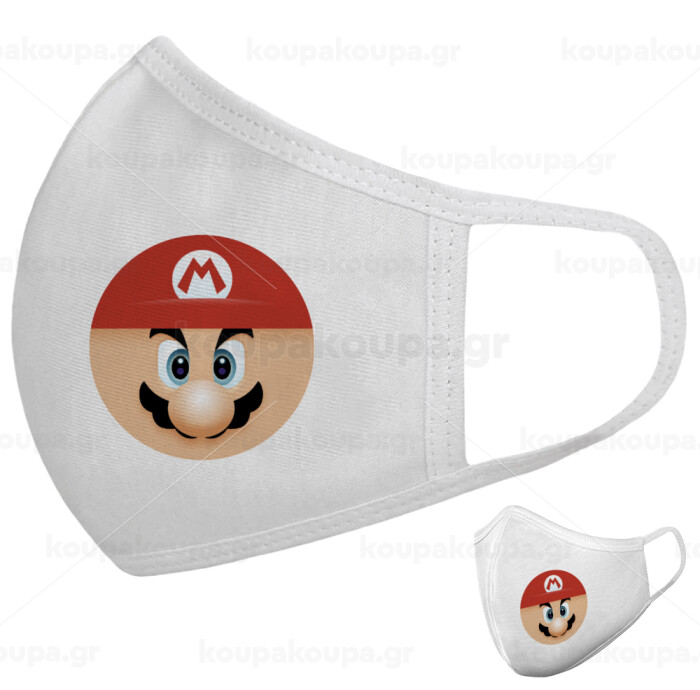 Super mario flat, Μάσκα υφασμάτινη υψηλής άνεσης παιδική (Δώρο πλαστική θήκη)