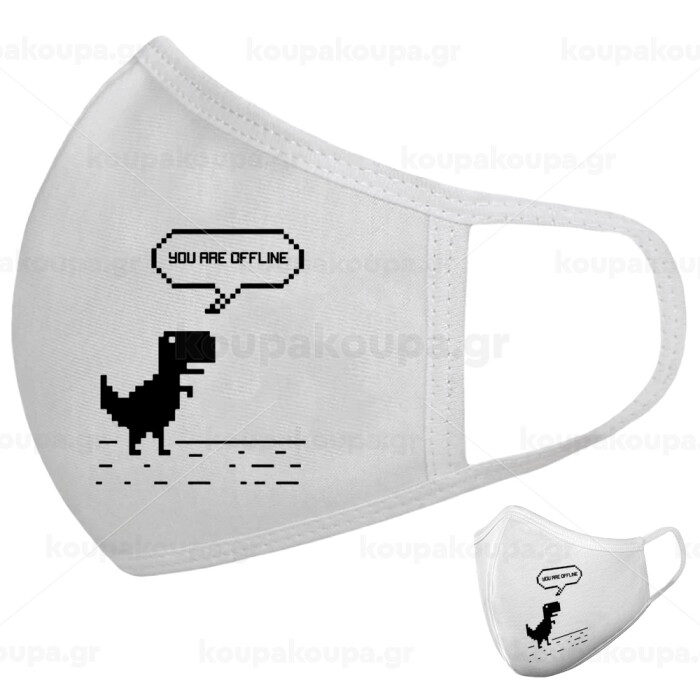 You are offline dinosaur, Μάσκα υφασμάτινη υψηλής άνεσης παιδική (Δώρο πλαστική θήκη)