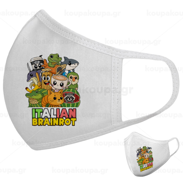 Italian Brainrot friends, Μάσκα υφασμάτινη υψηλής άνεσης παιδική (Δώρο πλαστική θήκη)