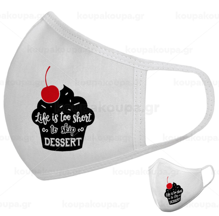 Life is too short, to skip Dessert, Μάσκα υφασμάτινη υψηλής άνεσης παιδική (Δώρο πλαστική θήκη)