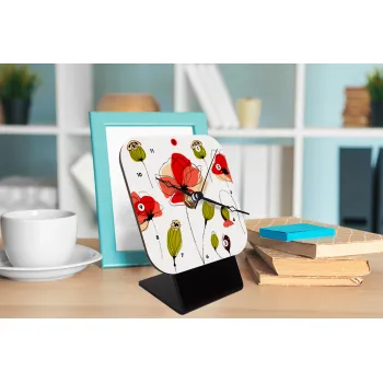 Red poppy flowers papaver, Ρολόι τοίχου ξύλινο (30cm)