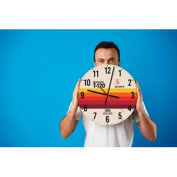 VHS sony dynamicron T-120, Ρολόι τοίχου ξύλινο (30cm)