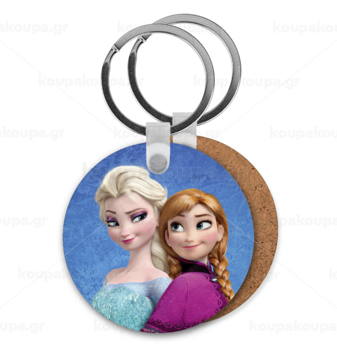 Ψυχρά κι ανάποδα Έλσα και Άννα, Μπρελόκ Ξύλινο στρογγυλό MDF Φ5cm